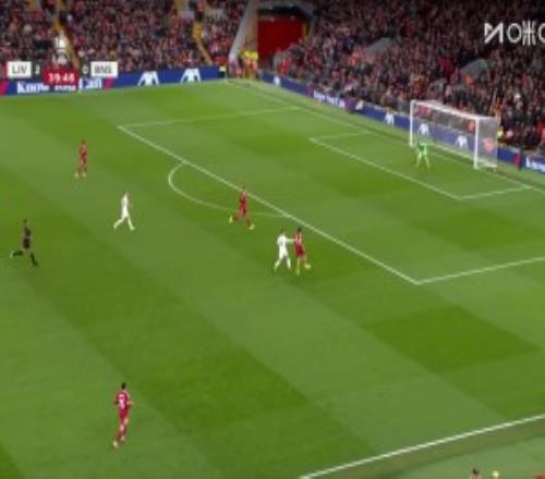 第57分钟,利物浦右路挑传至禁区内,前点头球后蹭,范戴克后点小角度摆腿扫射,球弹地后被扑了一下击中横梁出了底线!↓