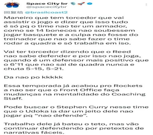 另一欧洲的休媒写道:很多火箭球迷认为本赛季火箭表现不佳是因为没有控球后卫,好像全队不会打球都要归结于没有PG。