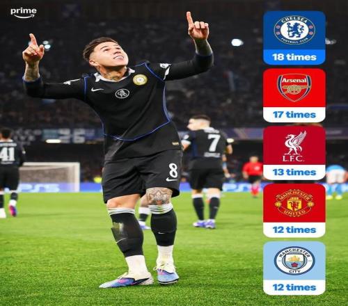据统计,切尔西晋级欧冠16强的次数来到了18次,冠绝所有英格兰球队。排在切尔西之后的分别是阿森纳(17次)、利物浦(13次)、曼联和曼城(12次)。